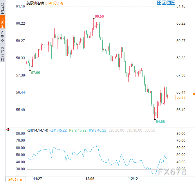 北京时间14:24,美原油连续现报56.34美元/桶。