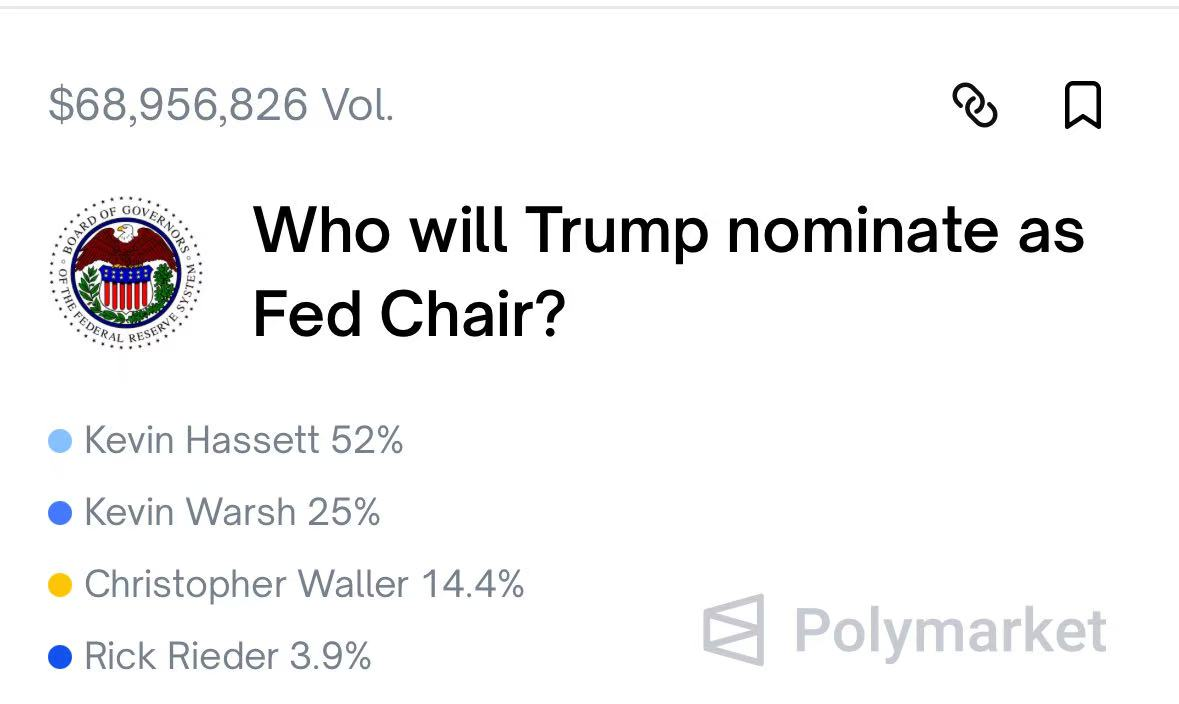但在预测平台Polymarket上,沃勒胜选的概率为14%,在所有候选人中位列第三,落后于热门候选人哈塞特(52%)和沃什(25%)。当地时间12月17日,特朗普表示,很快就会宣布下一任美联储主席人选,并强调应该大幅降低利率。