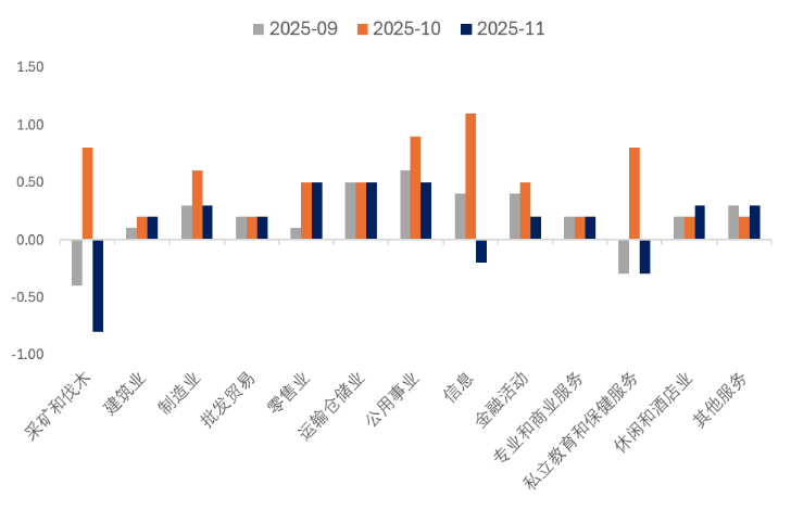 10月就业降幅虽录得2020年以来的最高水平,但其部分反映了临时性因素的放大效应。受年初联邦延期离职计划到期影响,政府部门就业大幅减少16.2万人,为10月就业增长的显著拖累分项。近月来就业扩张的行业广度略有改善,但增长动能仍过度依赖医疗保健与社会援助行业(10-11月平均每月增长6.4万人)。相比之下,对周期更为敏感的行业持续表现低迷,制造业、运输仓储、信息业、金融活动及休闲酒店业在11月均录得就业人数下降。其中,制造业就业新增连续第七个月录得下滑。自2025年初以来,制造业累计就业人数已减少6.3万人,目前就业水平已降至2022年3月以来的最低点