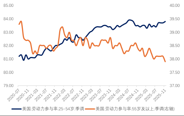 作为2025年的“收官之作”,本次非农就业报告整体仍印证了美国劳动力市场的放缓态势。非农就业人数在10月出现10.5万人的收缩后,虽于11月小幅回升6.4万人,但两月合计的就业水平仍较9月净减少4.1万人。值得注意的是,在计入对9月数据1.1万人的下修后,近三个月(9-11月)的月度平均就业增长已大幅下降至2.2万人,显著低于前期62万人的趋势水平。