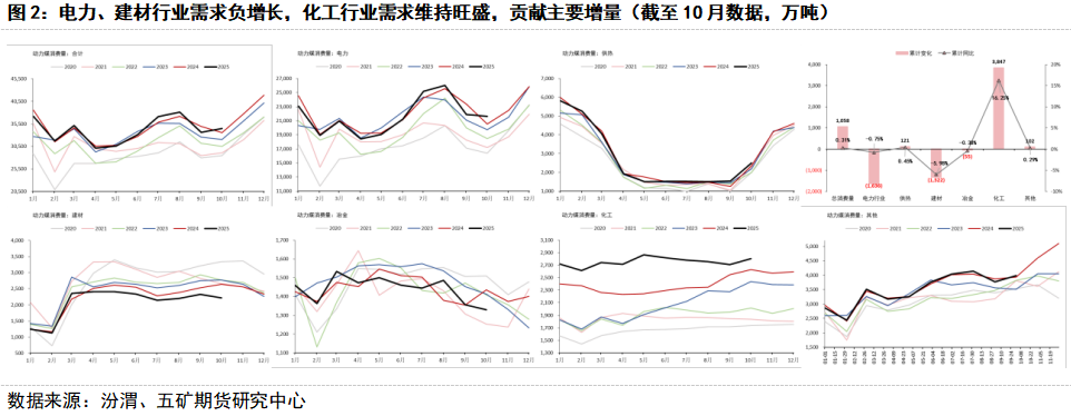 需求端,回顾2025年,据汾渭数据显示,1-10月我国累积动力煤消费增量1058万吨或+0.31%。