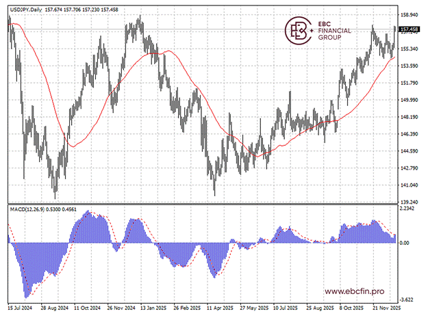 双顶形态配合看跌的MACD背离信号,预示日元进一步走强的可能性极高。若跌破157关口,可能引发新一轮下跌行情。