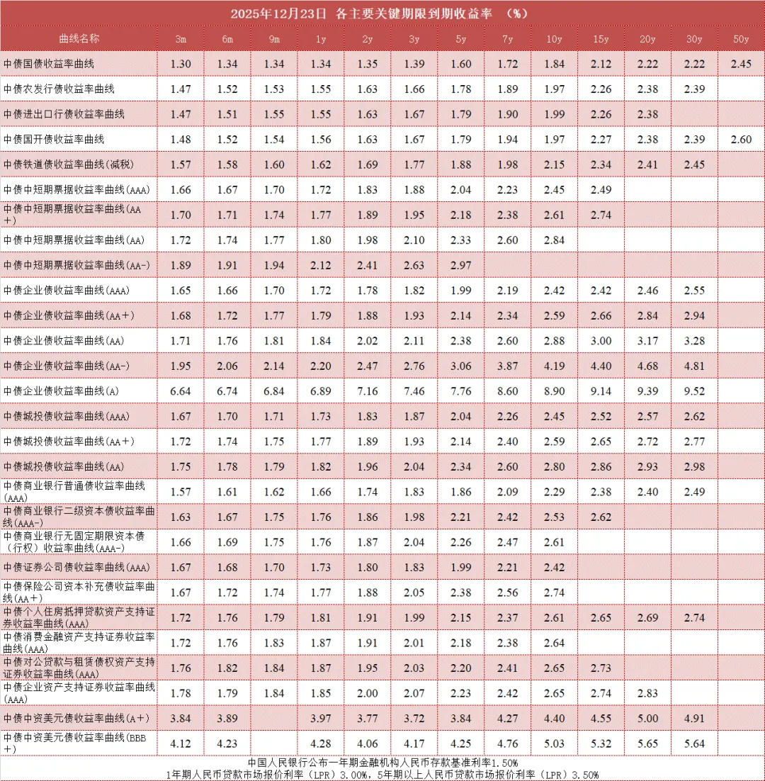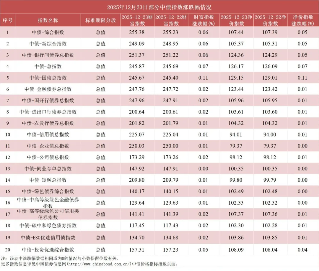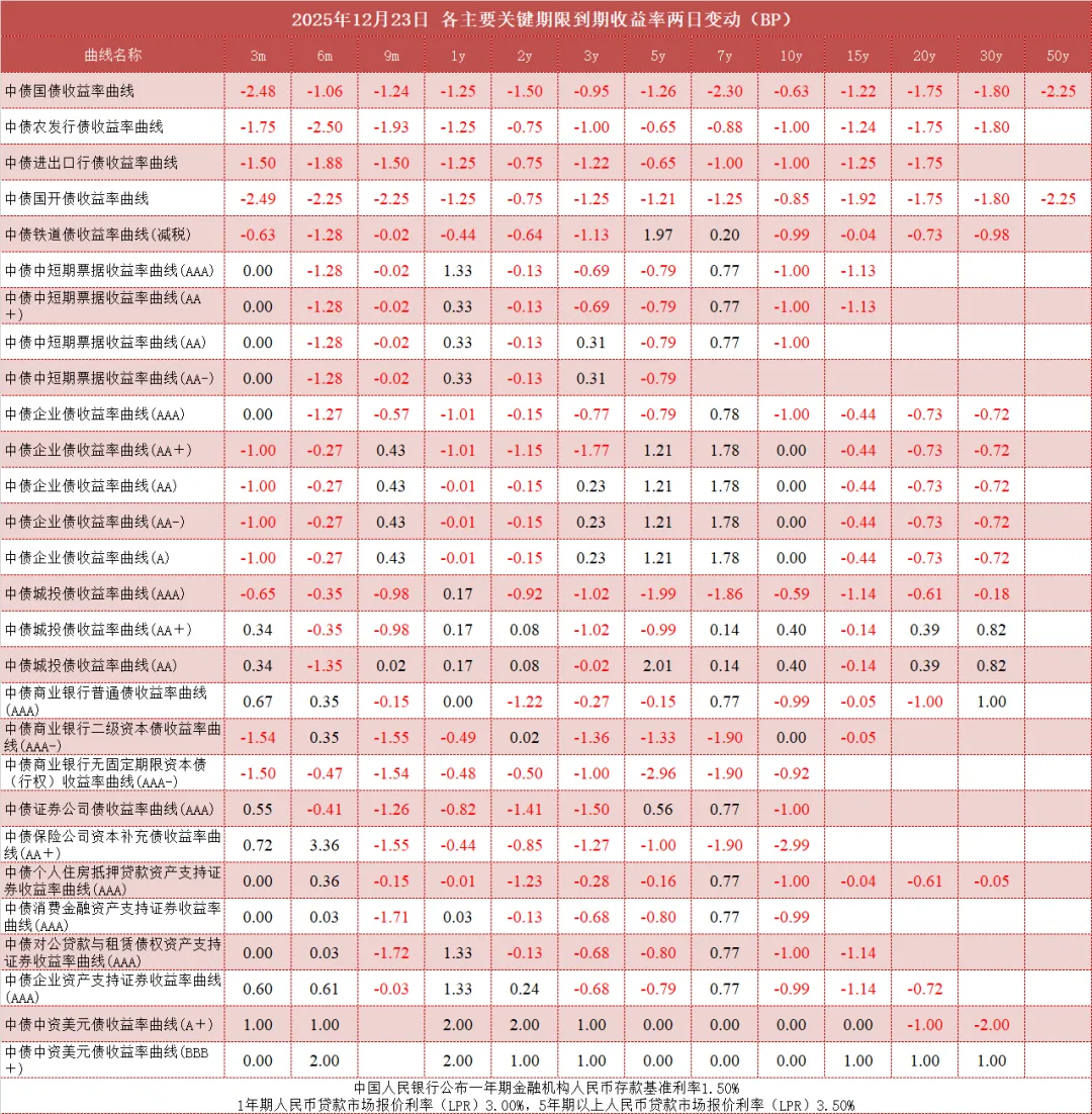 债市值言:中债收益率曲线和指数日评2025年12月23日