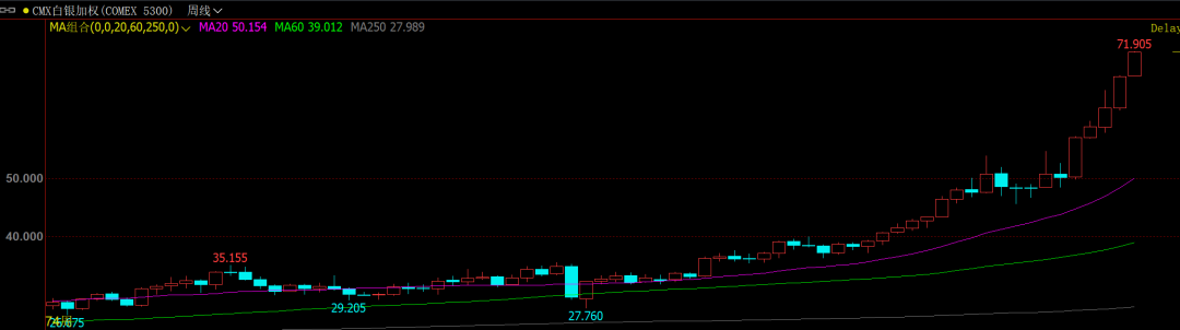 金银价格续创历史新高。COMEX黄金期货价格收涨1.02%,报4515美元/盎司;COMEX白银期货价格收涨4.44%,报71.61美元/盎司。现货铂金价格涨7.46%,报2289.54美元/盎司;现货钯金价格涨4.43%,报1857.46美元/盎司。