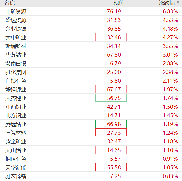 12月24日,A股有色金属板块走强,截至发稿,中矿资源涨超6%,盛达资源、兴业银锡涨超4%,电工合金、兴业银锡、新威凌、北方铜业、深圳新星等个股跟涨。