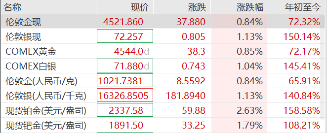 有色金属概念大涨,中矿资源涨超6%,现货黄金首次升破4520美元,金饰克价涨到1411元