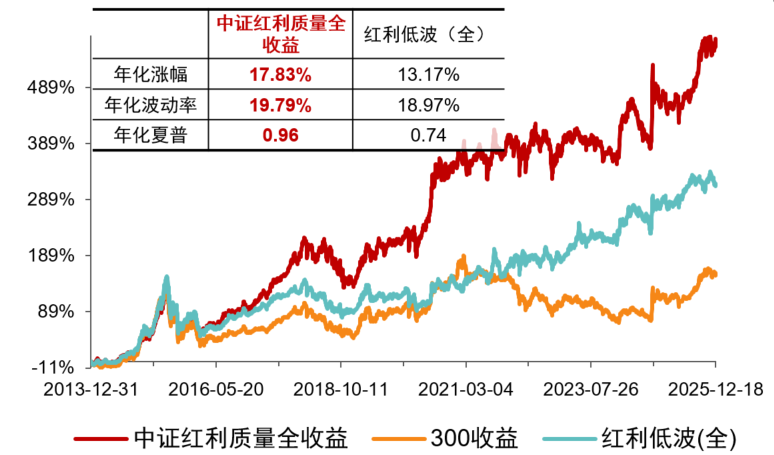 红利质量策略优势显:中证红利质量全收益年化涨幅17.83%
