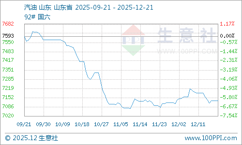 进入本轮计价周期,国际油价行情走势下滑,截止19日,美国WTI原油期货2月合约结算价报56.52美元/桶,布伦特原油期货2月合约结算价报60.47美元/桶。本轮调价周期内,原油价格行情整体走低,本周期初地区局势有所缓和,地缘局势风险溢价消退,加之美国需求减弱,美国关税问题拖累全球经济和需求预期,导致国际油价行情走势下滑,后期虽然委内瑞拉地缘局势紧张致使原油走势上涨,但是整体来看原油仍呈现下滑趋势。截止22日,第十个工作日原油品种变化率为-3.51%,对应国内油价每吨汽油下调170元,每吨柴油下调165元,折合每升下调89#0.12元、92#0.13元、95#0.14元、0#0.14元。