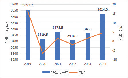 铁合金主要用于炼钢生产的脱氧剂、脱硫剂及合金添加剂,铁合金行业是冶金工业发展不可或缺的重要组成部分。伴随着新中国钢铁工业的发展壮大,经过70多年的艰苦奋斗,我国现已建成世界上产能、产量最大及品种齐全、完全能够满足以炼钢为代表的下游行业需求的相对完善的铁合金工业体系。