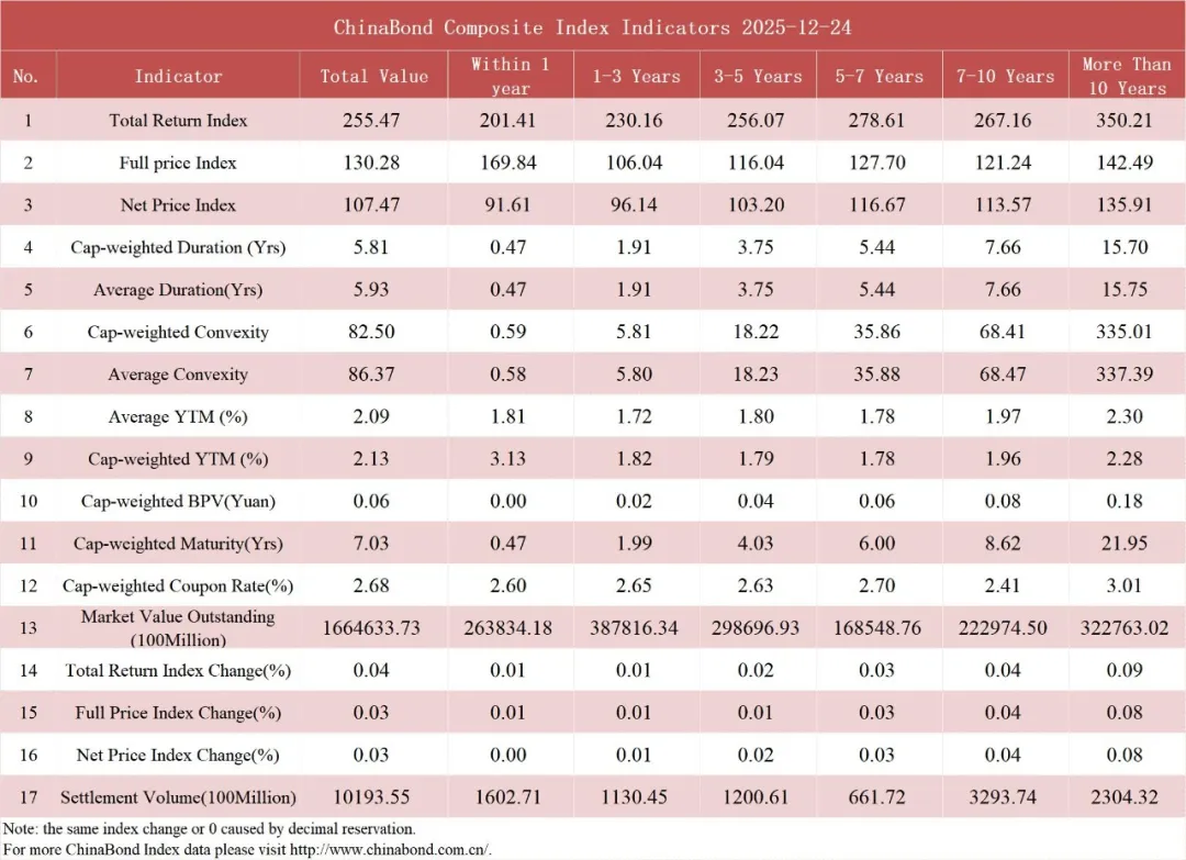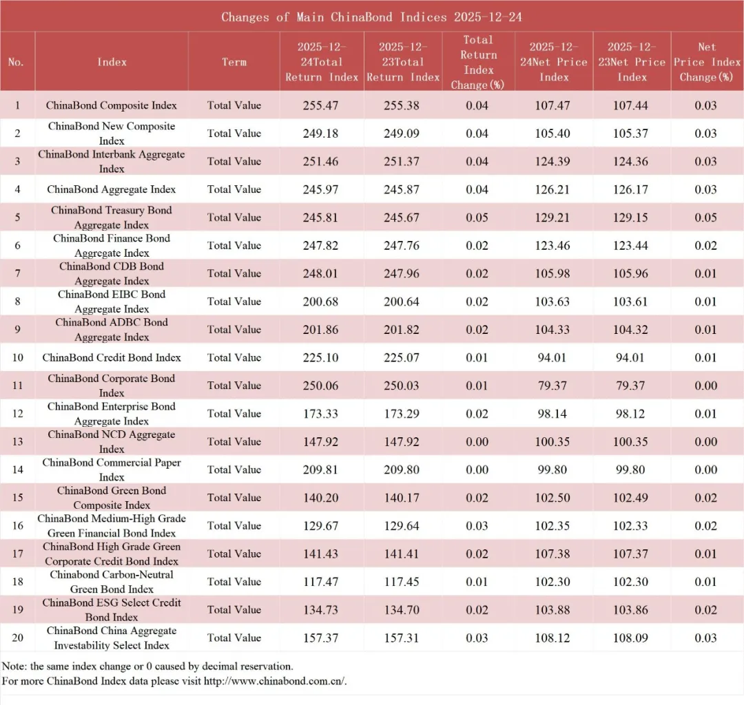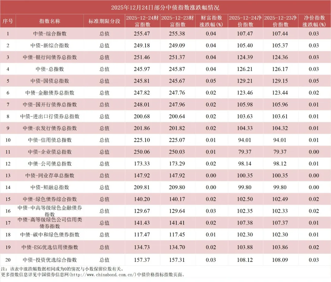 债市值言:中债收益率曲线和指数日评2025年12月24日