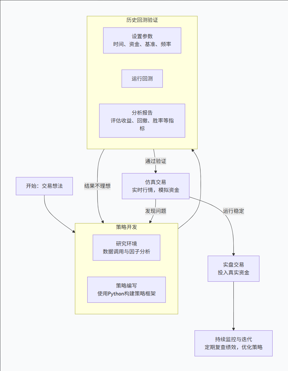 充分验证:绝对禁止策略未经过充分回测和仿真就上线实盘。这是初学者最容易导致亏损的原因之一。