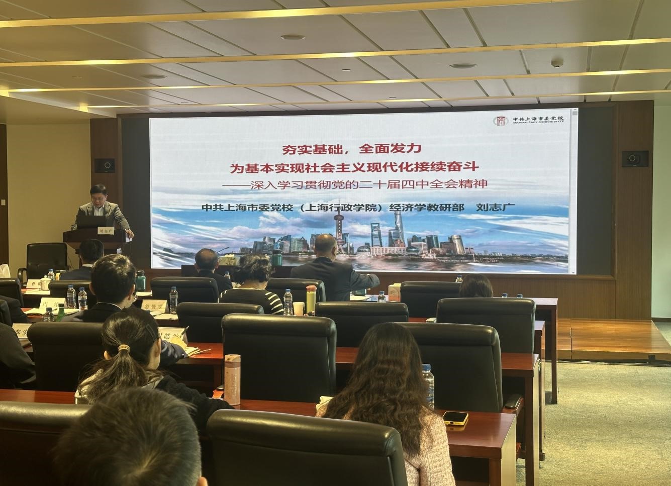 近期,建信期货举办学习贯彻党的二十届四中全会精神专题辅导报告会暨宣讲会,特邀中共上海市委党校(上海行政学院)经济学教研部刘志广教授作专题辅导报告,公司党委书记、董事长林晓东作宣讲报告。公司党委班子成员、中层及以上管理干部、各党支部书记及支委委员、入党积极分子、党员发展对象、预备党员、公司党外人士和青年员工代表80余人在线下、线上会场参加了本次会议。