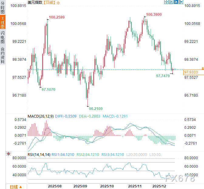 短期内,在鲍威尔任内及数据不明朗阶段,美元可能因美联储的审慎而相对坚挺;但随着新主席上任、数据澄清及降息周期明确推进,美元在下半年走软的概率正在增加。周五(12月26日)亚市早盘,美元指数在近两个半月低位窄幅震荡。