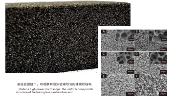 其次,泡沫玻璃微观上是多孔结构。泡沫玻璃内部充满了均匀分布的微小封闭泡孔,其闭孔率高达98%。这些泡孔是生产过程中由发泡剂分解产生的气体在玻璃液中均匀形成,并在冷却过程中被固定在玻璃基体中。大小适中、分布均匀的封闭泡孔可以有效地阻止热量的传递。