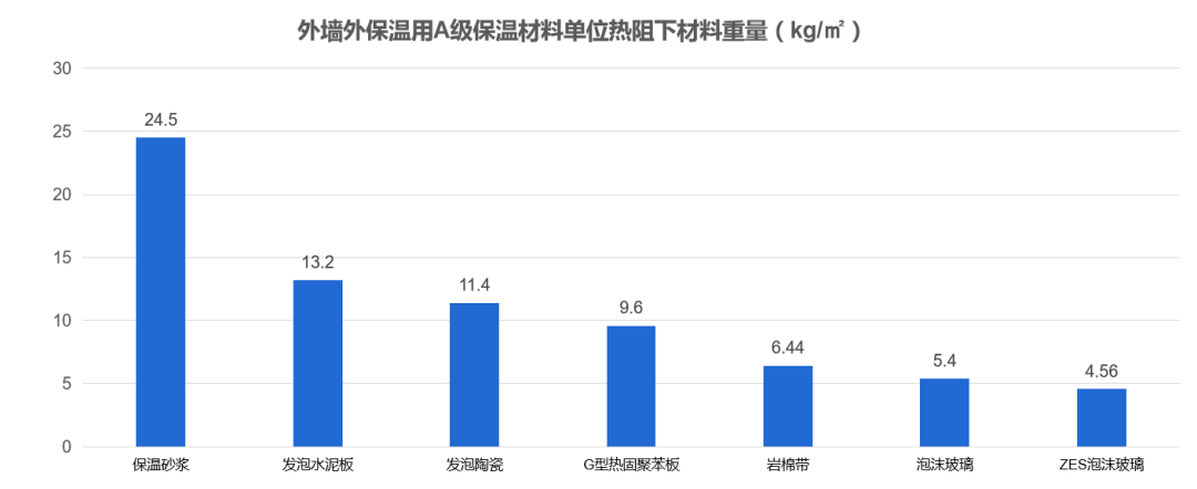 泡沫玻璃的密度范围为105~110kg/m。因此在达到相同的保温效果的情况下,采用泡沫玻璃的保温系统单位面积重量更轻,更安全。