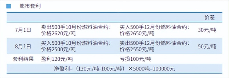 例如在进行上海期货交易所燃料油合约牛市套利时,买入近期交割月份的燃 料油期货合约,同时卖出远期交割月份的燃料油期货合约,希望近期合约价格上 涨幅度大于远期合约价格的上涨幅度;而熊市套利则相反,即卖出近期交割月份 合约,买入远期交割月份合约,并期望远期合约价格下跌幅度小于近期合约的价 格下跌幅度。