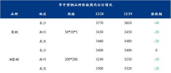 表1:华中型钢品种价格汇总(单位:元/吨)