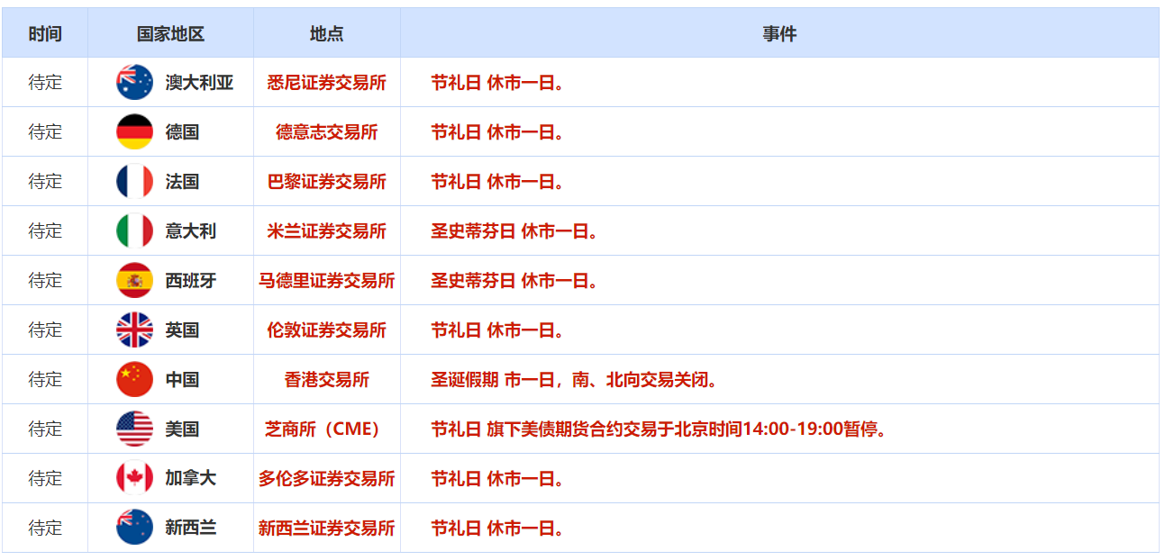此外,当下正值海外圣诞假期,部分交易所因节礼日与圣诞节连休,具体安排如下: