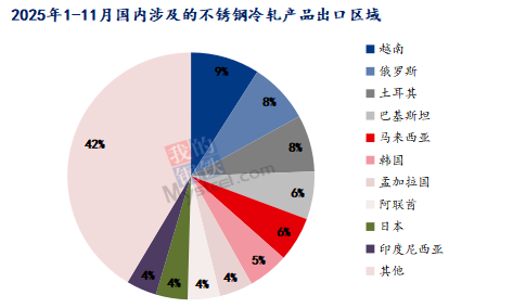 2025年国内涉及的不锈钢冷轧产品出口土耳其的量占比下滑,目前占比约8%的份额。