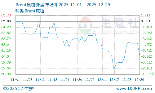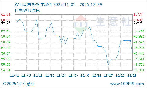 12月26日,国际原油期货下跌。美国WTI原油期货2月合约结算价报56.74美元/桶,跌幅1.61美元或2.8%。布伦特原油期货2月合约结算价报60.60美元/桶,跌幅1.60美元或2.6%。