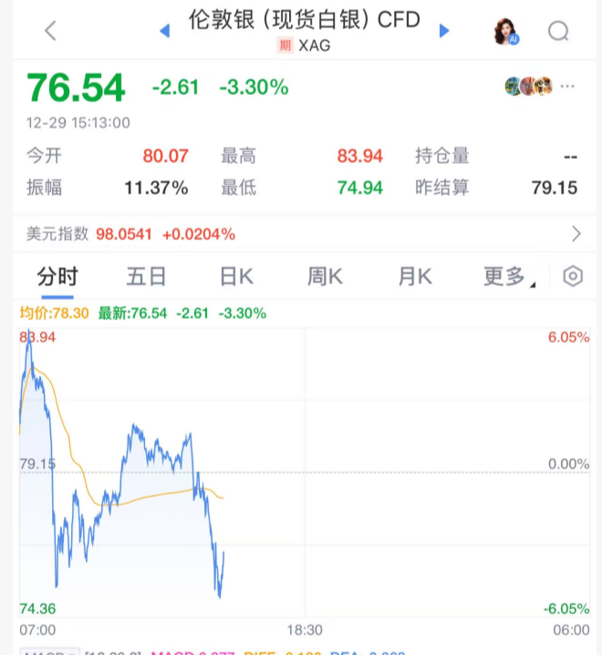 上期所沪银期货尾盘一度跌超2%,高位回落超12%。