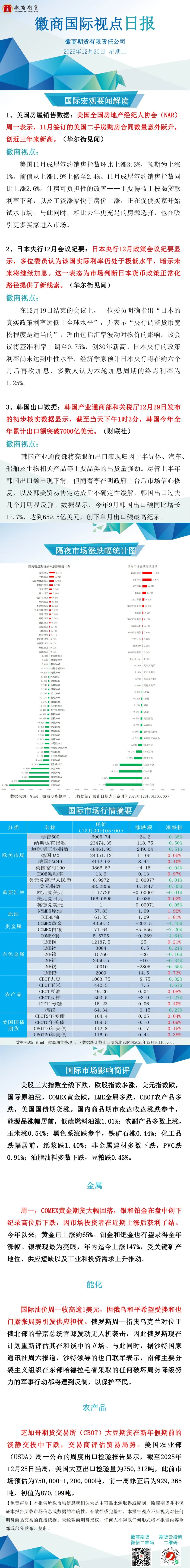 【徽商国际视点】金属全线回落,黄金逼近4300美元。日本央行12月会议纪要暗示更多加息。韩国年度出口额史上首次突破7000亿美元