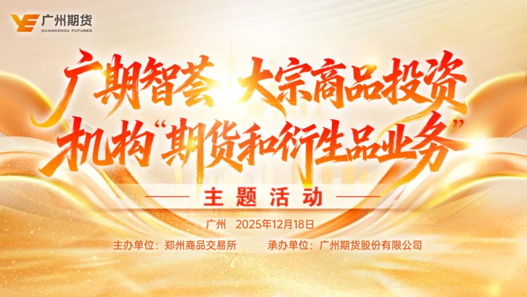 2025年12月18日,由郑州商品交易所主办,广州期货股份有限公司承办,广期智荟大宗商品投资——机构“期货和衍生品业务”主题活动成功举办。活动旨在帮助机构投资者理解2026年大宗商品的新叙事,把握产业链的投资逻辑,做好期货衍生品交易的风险控制。活动邀请了千源基金、草本投资、建发生活资材(广州)、广东中轻糖业、雍跃投资、传山基金、前海利丰行、潮商投资、中科沃土、工银瑞信等60多家持牌金融机构与产业机构到场。郑商所期货衍生品部总监刘俊、广州期货总经理助理周健锐出席并致辞。