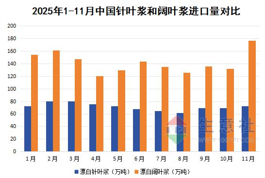 2025年我国木浆进口呈现 “总量增长、价格承压、来源集中” 的特征,针叶浆稳健修复、阔叶浆高增。2025年1-11月针叶浆累计进口量784.7万吨,同比上涨3.3%;1-11月阔叶浆累计进口量1559万吨,同比上涨12.2%。展望2026年海外针叶浆受部分浆厂减产和停产影响发运压力边际缓解,进口量或有受限。而阔叶浆部分浆厂通过减产或转产缓解供应压力,发运量预计保持稳定,对中国市场的依赖度有所降低。