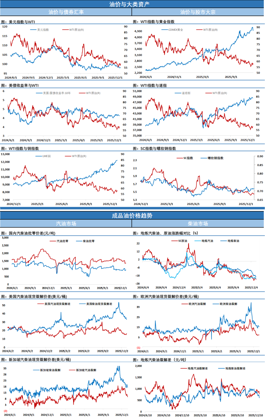 周二油价日内冲高回落,微幅收跌,亚欧时段地缘层面俄乌、中东及南美委内瑞拉持续不断的给市场带来扰动让油价维持阻力区域下方震荡反弹,乌克兰袭击俄罗斯能源设施次数创下月度新高,根据三方机构统计12月至少发生了24起针对俄罗斯炼油厂、海上油轮和其他海上设施以及主要管道基础设施的袭击事件。南美委内瑞拉被封锁下原油出口大幅下降,但夜盘油价又从高位回落的表现显示目前地缘因素还是难以改变原油市场供应过剩的局面。