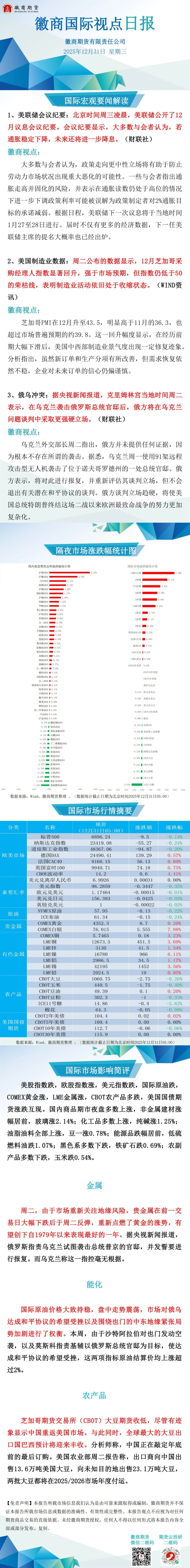 【徽商国际视点】美联储会议纪要:多数官员支持进一步降息。俄方将在与乌谈判中采取更强硬立场。芝加哥采购经理人指数12月明显回升