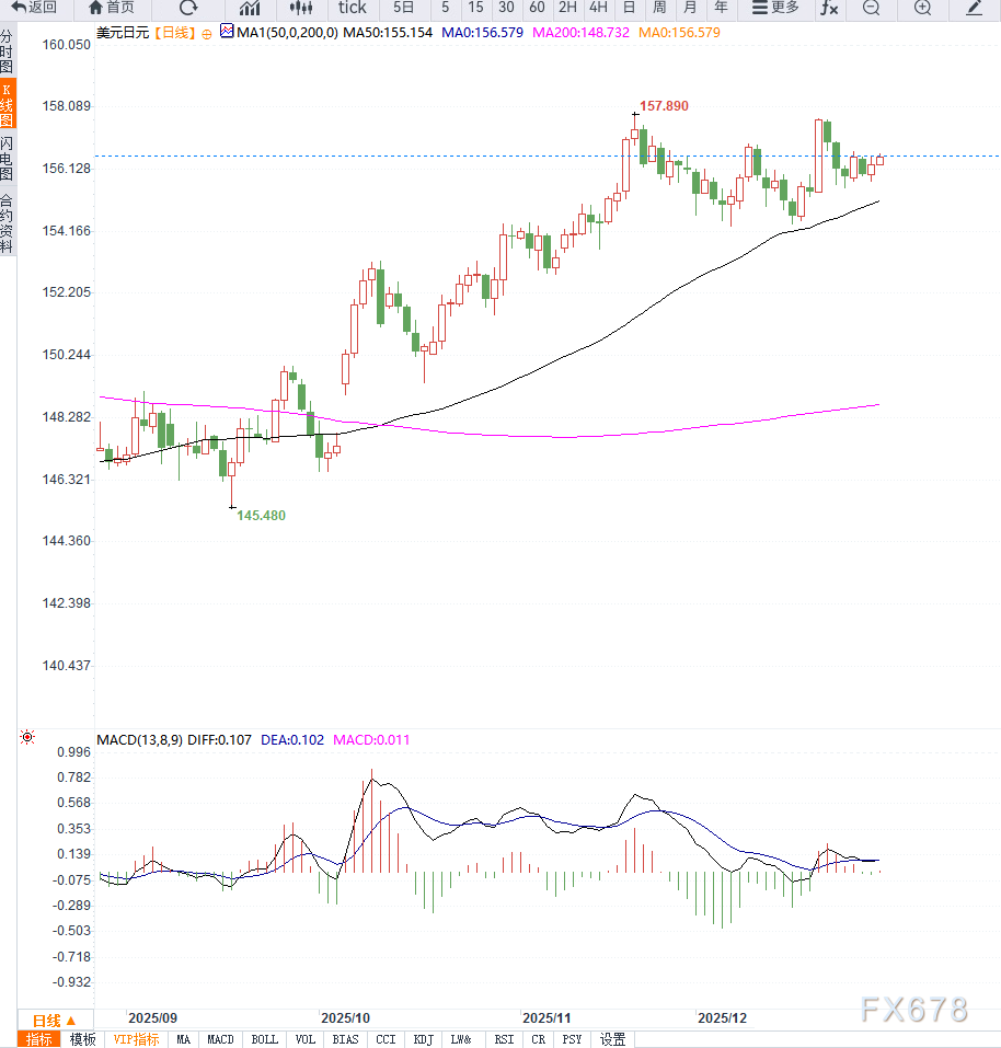 若区间突破上沿,可望延续日内反弹;下破156.40则可能回踩156.00支撑。