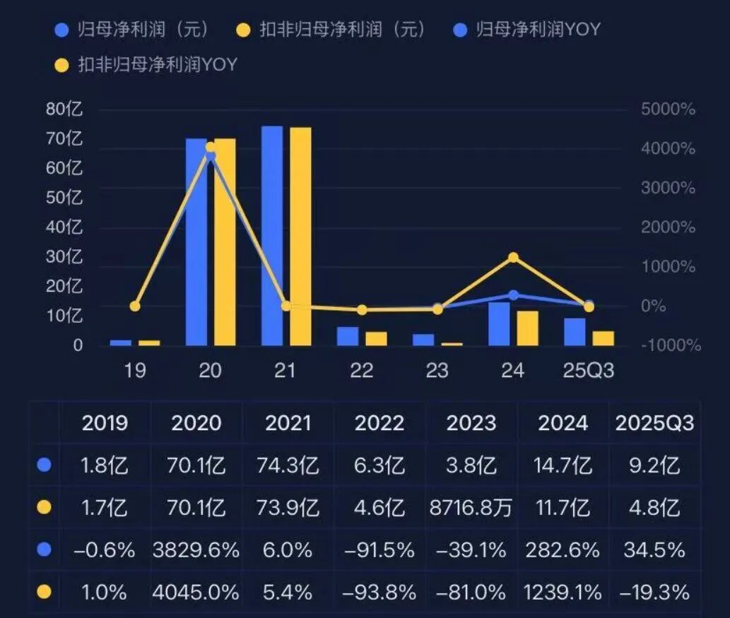 特别是三季度单季度,英科医疗2025年第三季度归母净利润为2.14亿,同比大幅上升113.04%,而扣非净利润仅为8428.02万,同比下降25.87%。