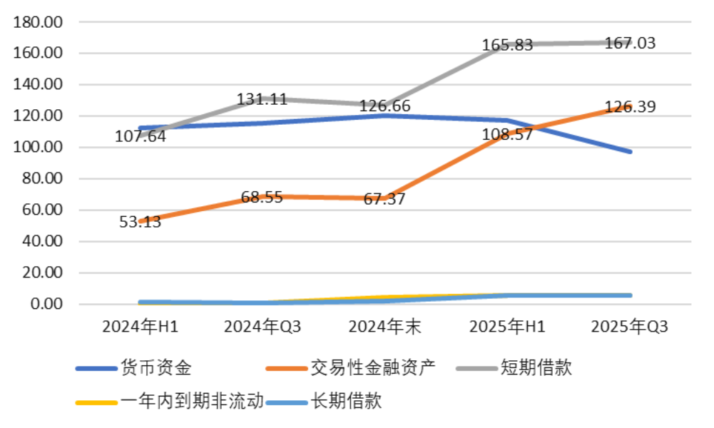 截止2025年三季末,英科医疗短期借款增长至167.03亿,相比2024年二季度增长了近60亿。而这些增长的借款同样还是被公司用来购买理财产品,三季末购买的理财产品(交易性金融资产)高达126.39亿,较2024年二季度末同样增长了60亿左右。