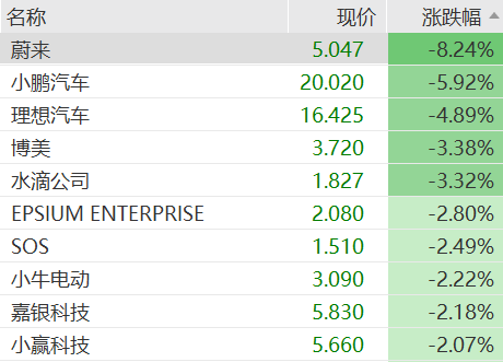 多只热门中概股下跌,纳斯达克中国金龙指数目前跌幅扩大至1%。蔚小理跌幅居前,分别跌8.2%、5.9%和4.9%,百度、网易、新东方、阿里巴巴均跌超1%。上涨方面,联掌门户大涨超25%,灿谷涨超4%。
