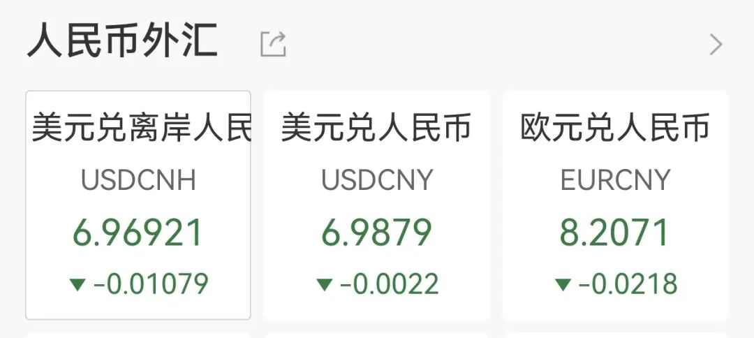 离岸、在岸人民币对美元均升破6.97关口,刷新2023年5月以来新高。