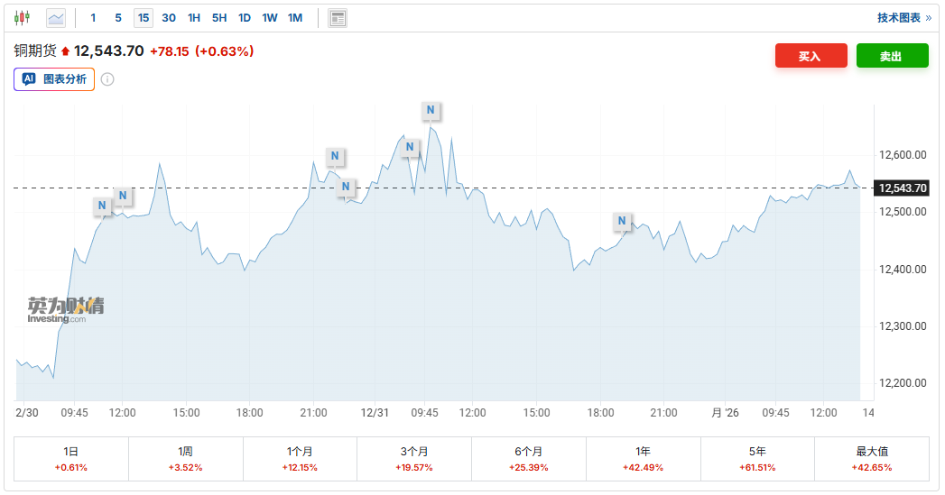 供应趋紧驱动铜价创16年来最大年度涨幅后2026开年再度走高