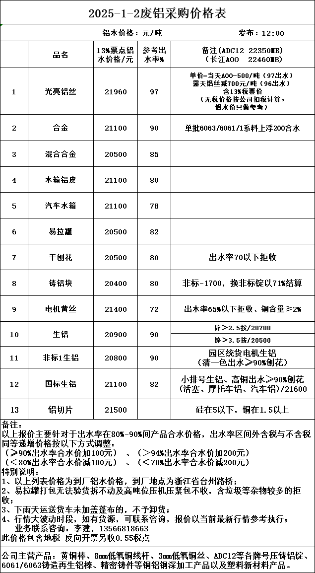 回收废铝今日报价