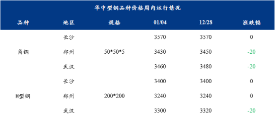 表1:华中型钢品种价格汇总(单位:元/吨)