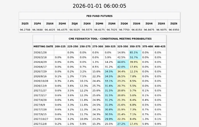 元旦期间,CME美联储降息概率预测未发生显著变化