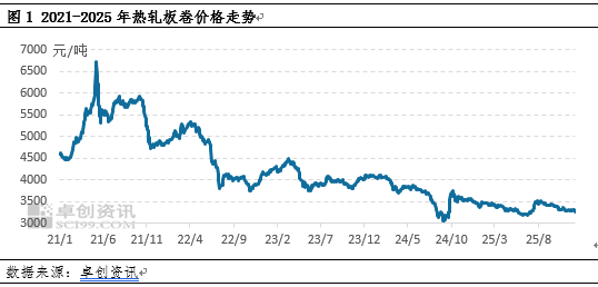 【导语】2025年以来,热轧板卷市场基本围绕高供应,低需求展开,期间伴随消息面释放以及政策面变动,市价出现阶段性反弹,但全年均价下滑的趋势未发生转变,下面卓创资讯就2025年热轧板卷行情、生产、贸易、需求等各个环节运行情况进行介绍。