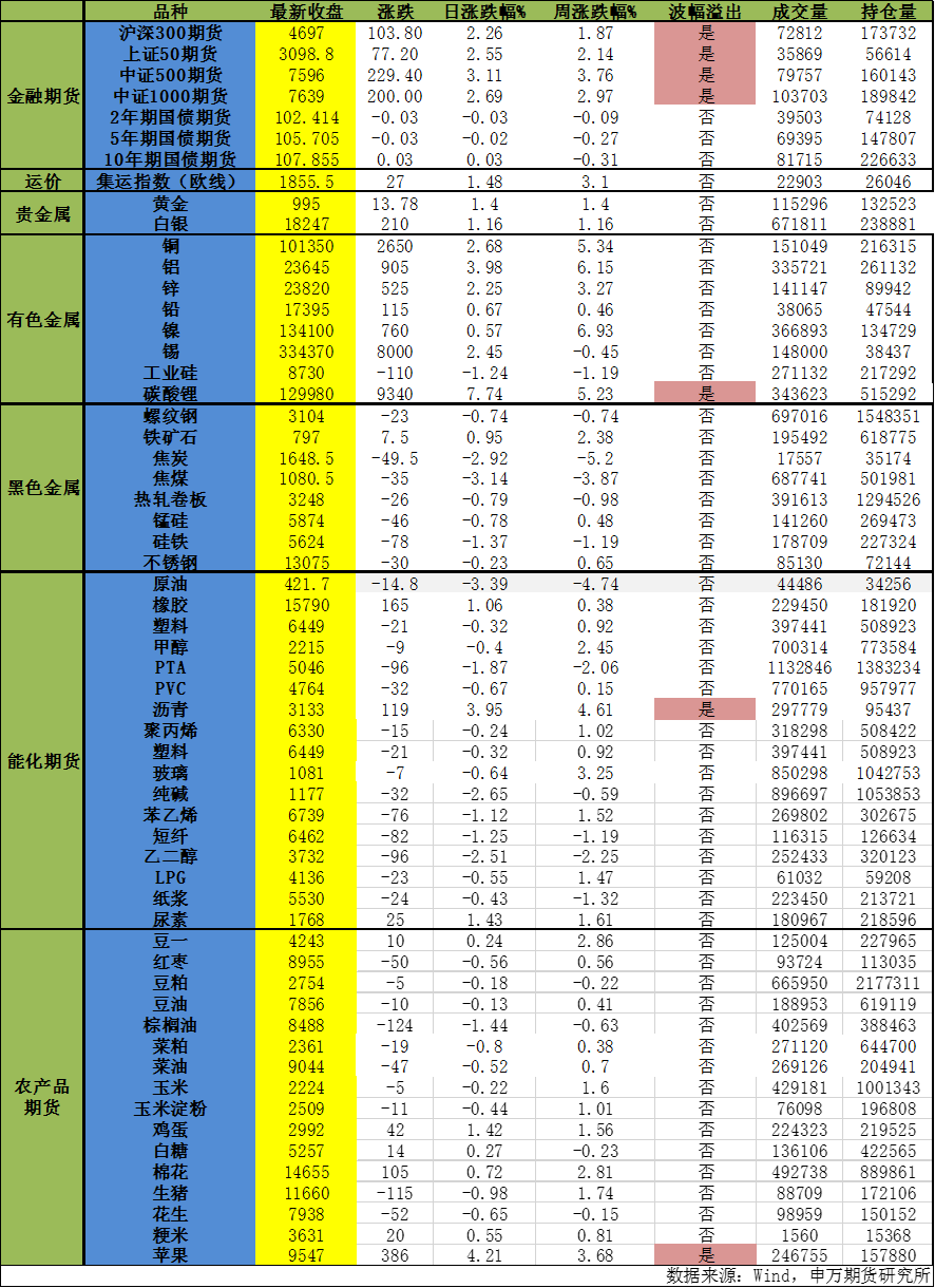 主要品种收盘评论