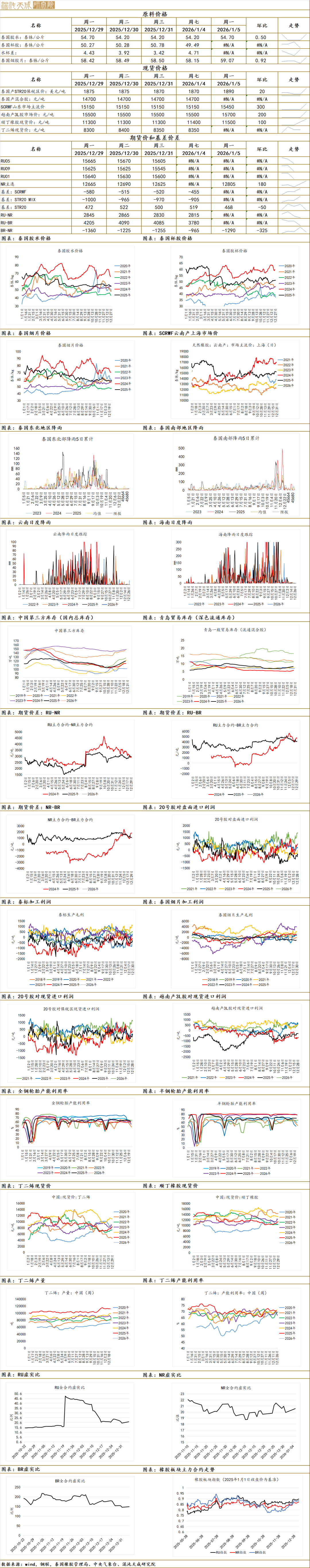 需求端,据了解,“元旦”假期部分检修企业多数按计划复工复产,装置生产处于恢复阶段,近日将逐步恢复至常规水平,另有部分企业仍处检修期,整体出货偏慢,成品去库缓慢。