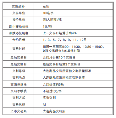 1.2大连商品交易所豆粕期货合约中所规定的豆粕指以大豆为原料,以预压—浸提或浸提法取油后所得饲料用大豆粕,产地不限。