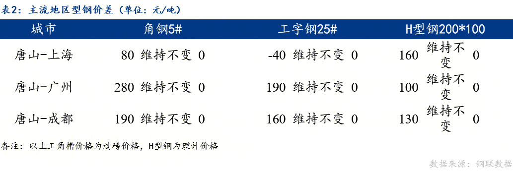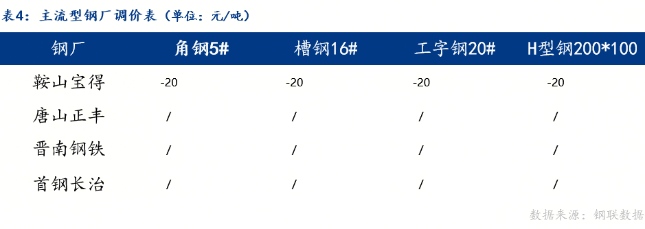 2、成交量为20家型钢厂当日成交,其中包括工字钢6家、角钢7家、槽钢7家。