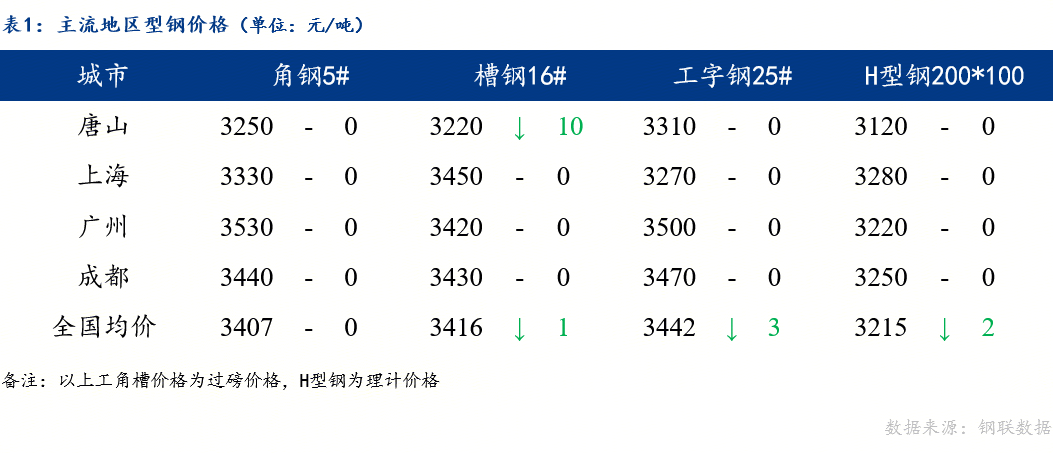 今日型钢价格持稳运行。