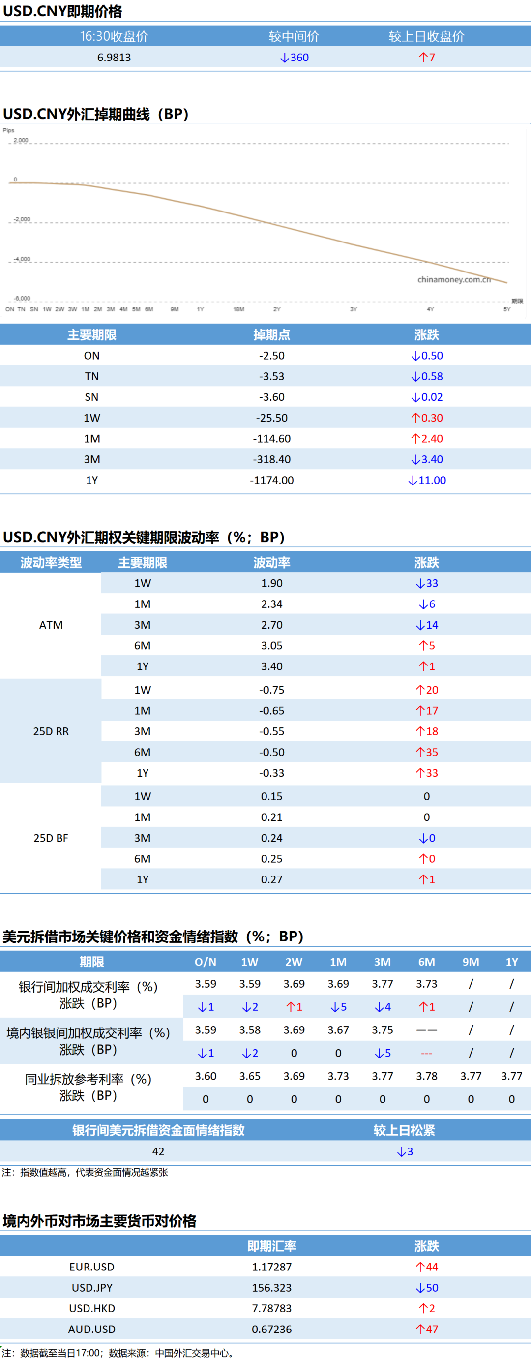 美元指数弱势反弹,人民币强势调整纽约尾盘,美元指数跌0.03%报93.0409,欧元兑美元跌0.12%报1.1795,英镑兑美元涨0.23%报1.3047,澳元兑美元涨0.06%报0.7128,美元兑日元跌0.39%报104.425。离岸人民币兑美元跌0.2%,USDCNH报6.7139。
