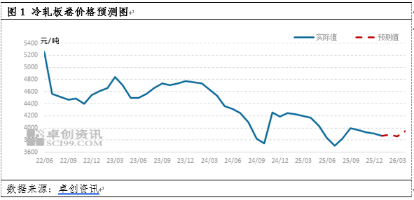 综上预计2026年1月冷轧板卷市场价格重心较12月上涨,月均价3890元/吨,较12月上涨18元/吨,涨幅0.46%,月内市场价格于3840-3930元/吨运行。尽管后期市场存在一定利多预期,但短期市场消费不易有显著增加,因此市场行情难有显著变动。