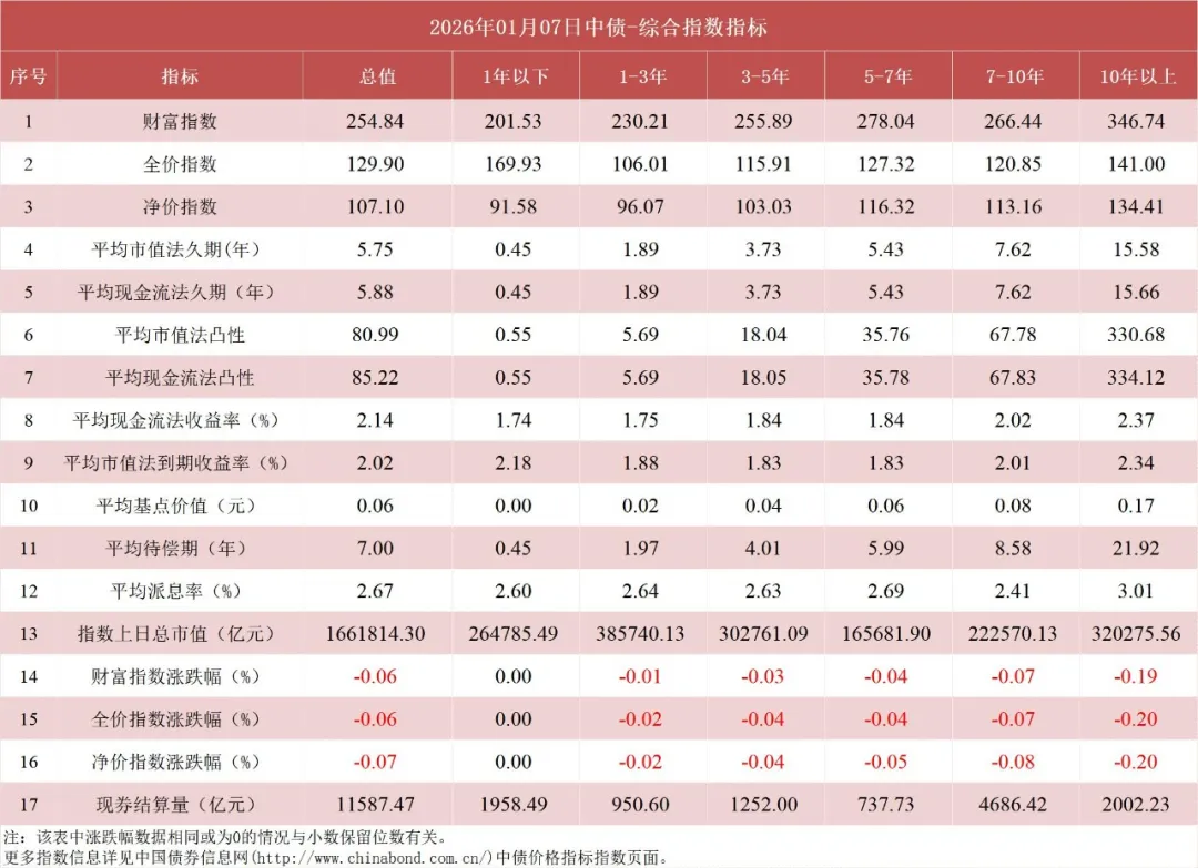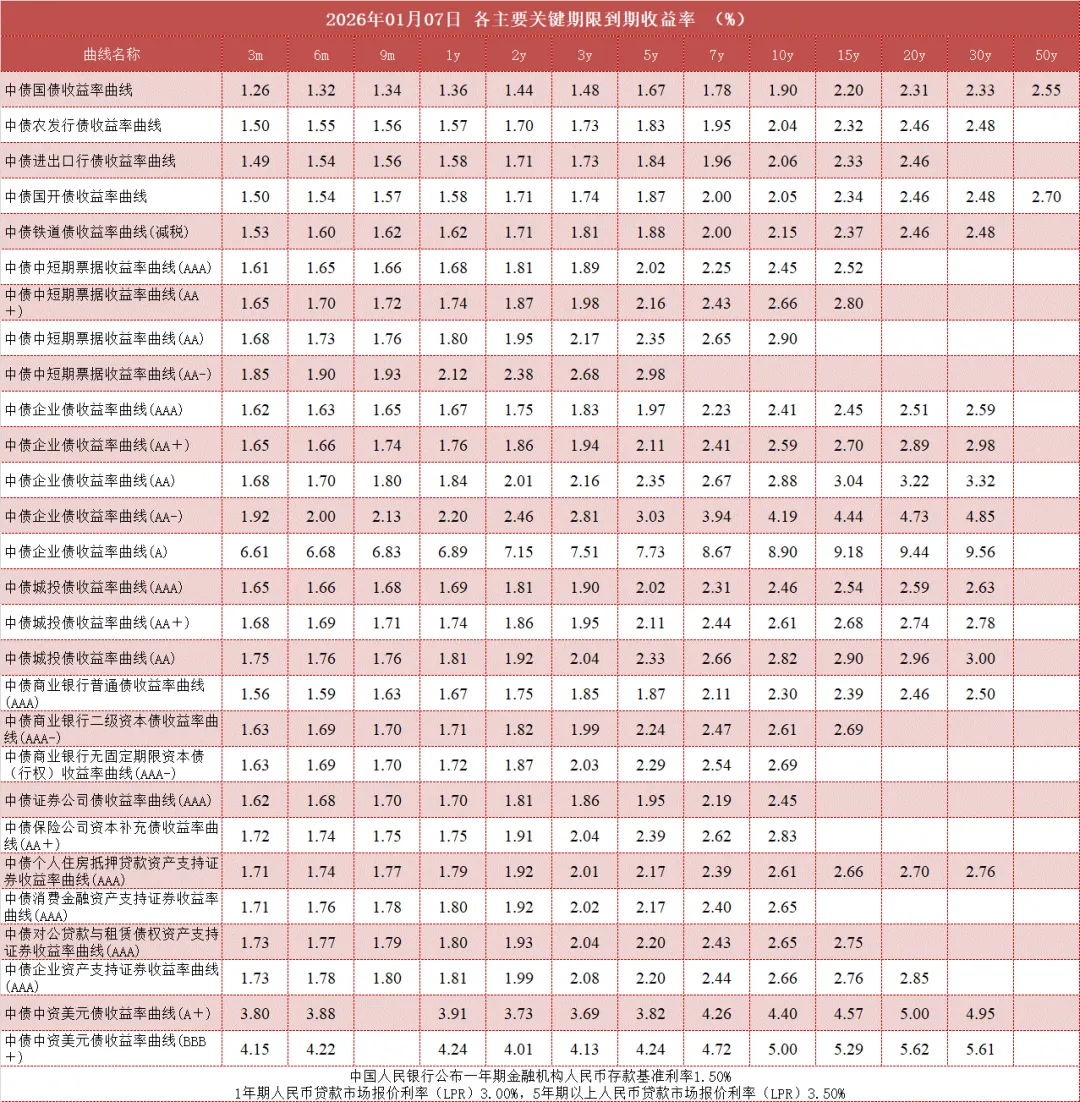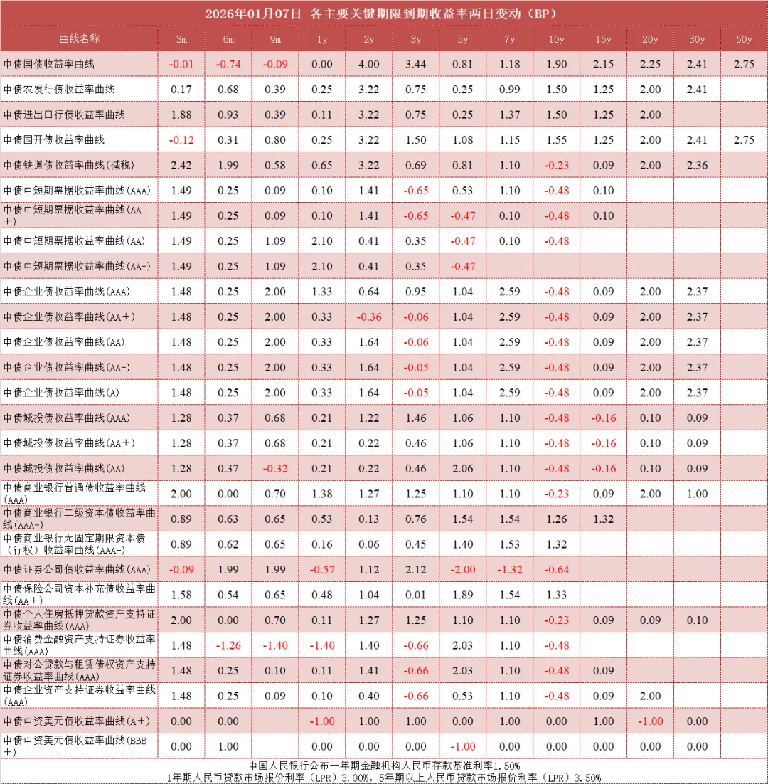 债市值言:中债收益率曲线和指数日评2026年1月7日