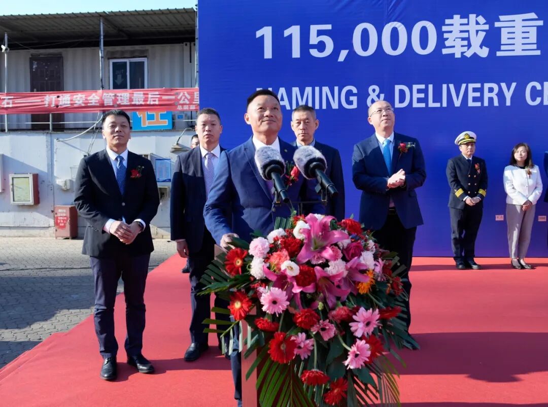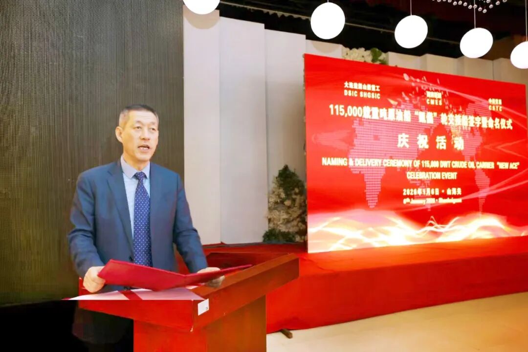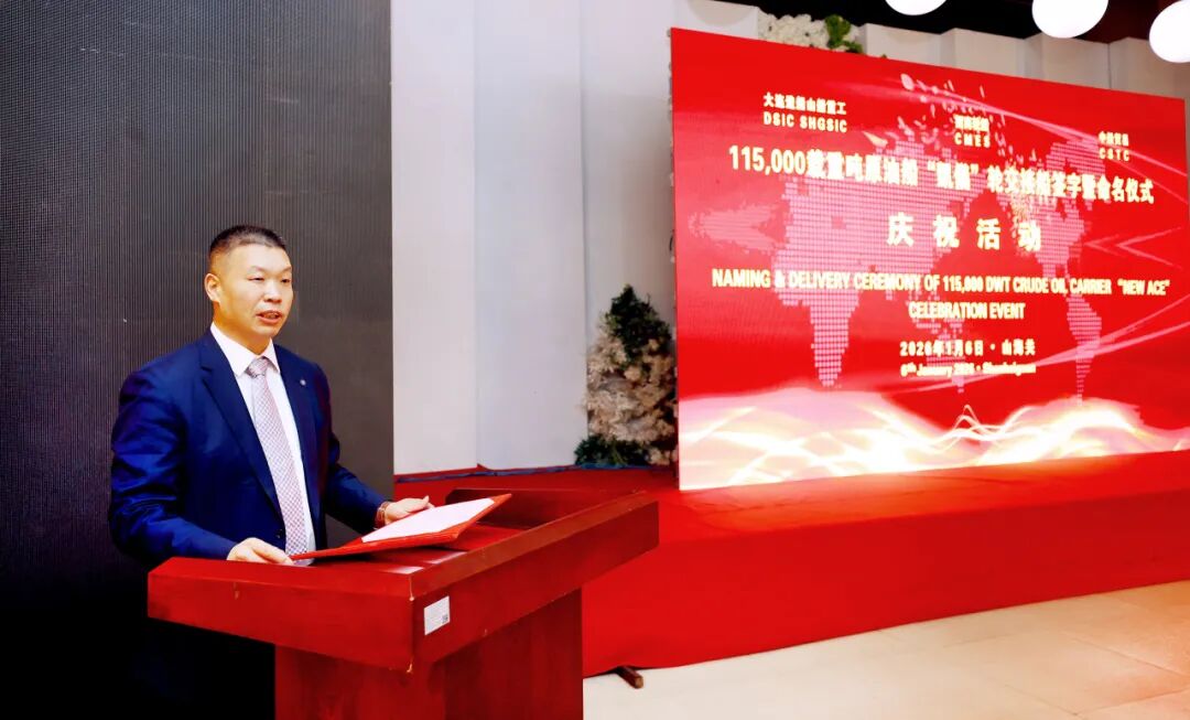 胡斌在致辞中表示,“凯仪”轮是招商轮船为服务中石油国事“两洋战略”专项打造的新一代阿芙拉型原油船,在船舶操纵性、经济性和节能环保方面达到行业领先水平。新船成功交付是中石油国事、大连造船与招商轮船三方资源共享、优势互补的生动写照,彰显了央企在技术创新与产业协同方面的深度融合。招商轮船愿与各方进一步深化合作,增强产业链协同,为服务构建新发展格局贡献力量。