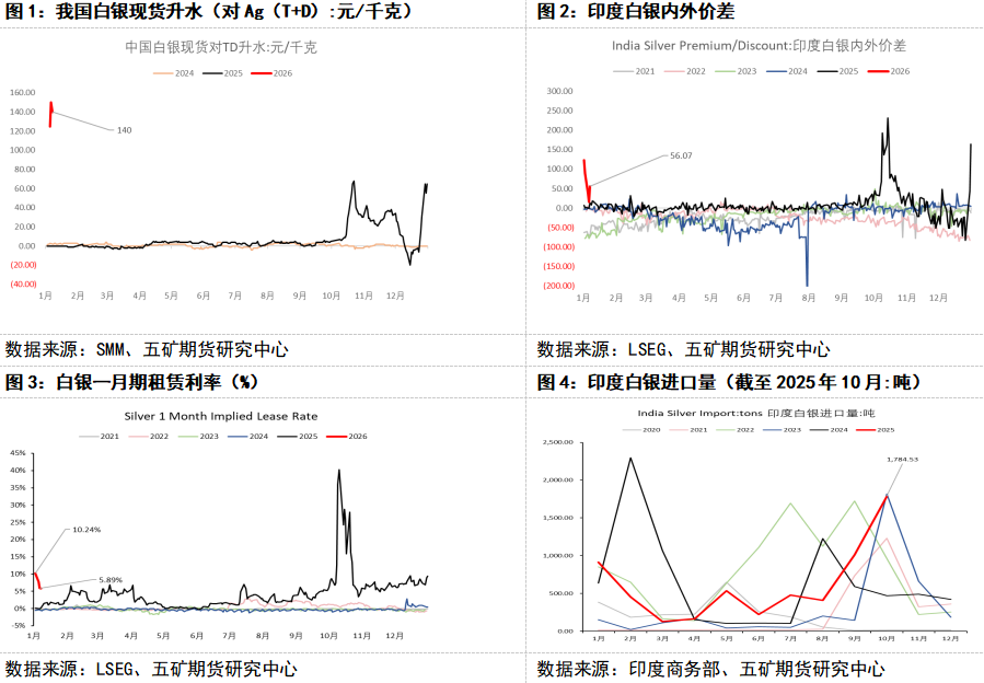 白银现货在今年一季度仍存在进一步的驱动,印度储备银行于2025年6月正式发布了新版的抵押贷款指引,白银首次在印度监管体系中获得与黄金类似的抵押品地位。细则规定每位借款人可以抵押上限为10千克的白银首饰。这一新规将在今年4月1日起正式执行。而在年初,我们已观察到了印度白银溢价的回升。2025年10月,印度白银的单月进口量即达到1785吨,同时伴随着其国内溢价的显著上升,这是当时伦敦银现货紧俏的重要驱动因素。我们预计在一季度,印度白银的进口仍对白银的需求端形成支撑。